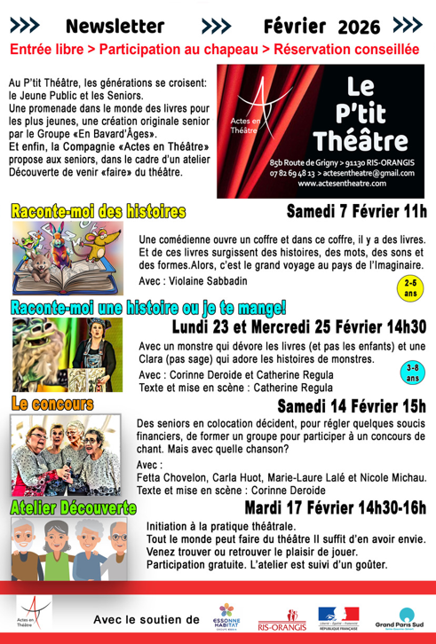 Petits et grands, venez (re)découvrir le théâtre au travers d'ateliers ou de représentations.